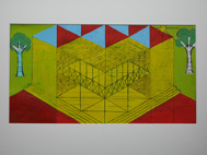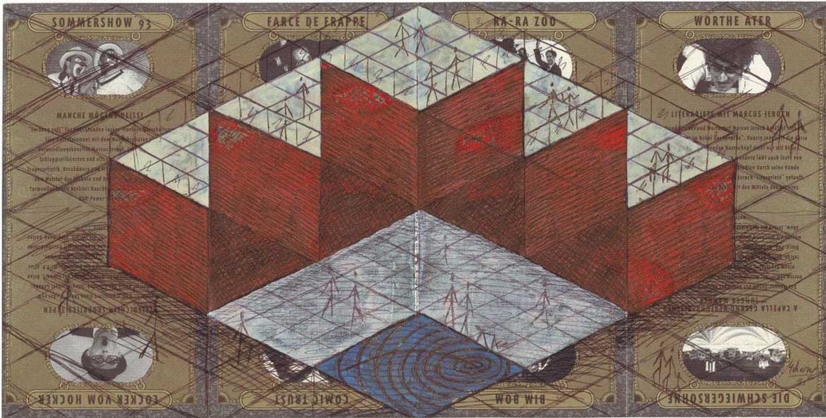 Museum 17.8.1995 Kugelschreiber Aquarell auf Faltblatt 21x42cm