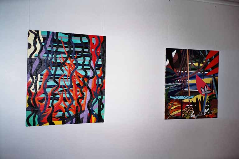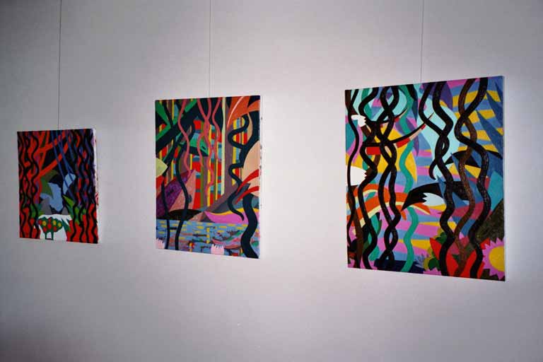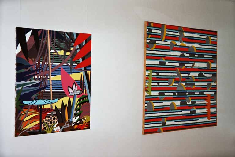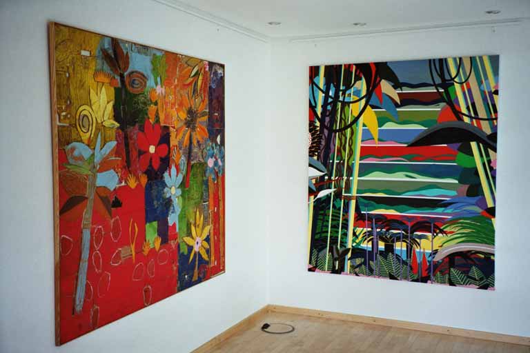 Rechts:Exotische Insel 4.3.2002 Öl auf Leinwand 120x120cm