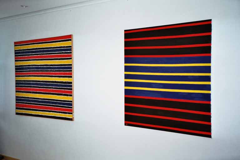 Rechts:Steine in der Strömung 12.4.1999 Öl auf Karton/Nessel 120x135cm