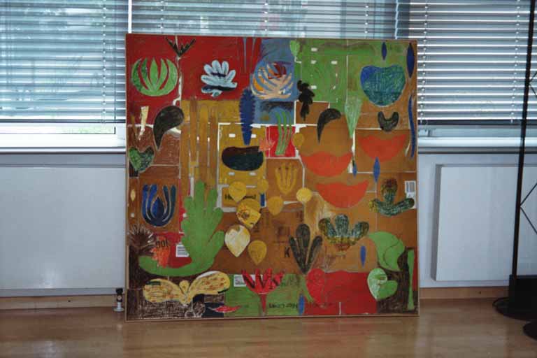 Mitte:Blumen zwischen Steinen 31.5.1998 Öl auf Karton/Nessel 160x180cm